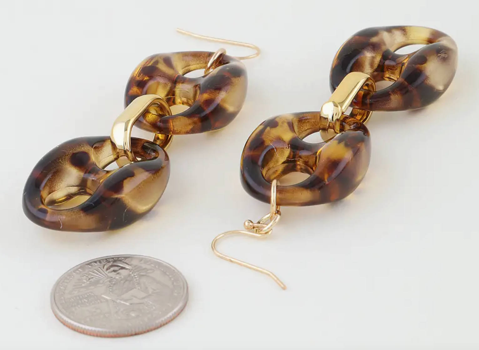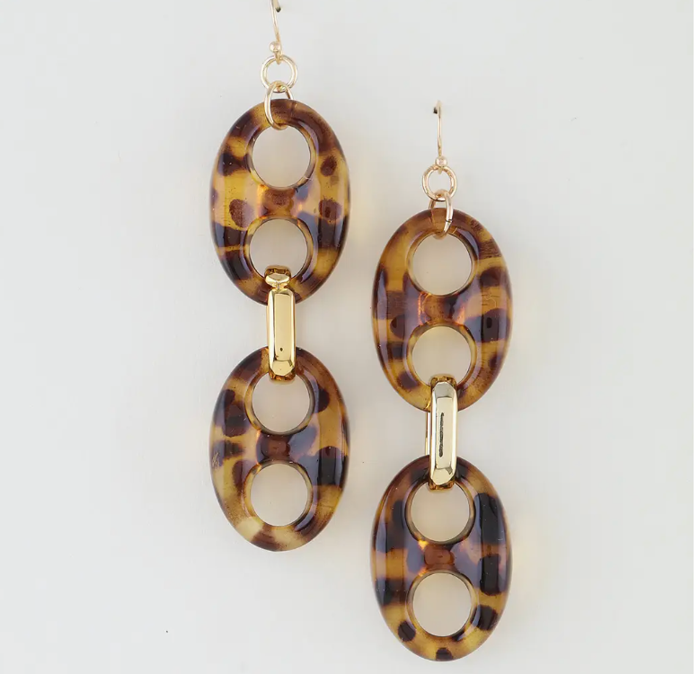 Make a splash with these Tortoise Drip Earrings! Measuring approximately 1 x 3.5", these statement drops feature bold mariner chain links wrapped in a gorgeous tortoise-shell pattern. The layered design creates movement and dimension that catches the light beautifully, while the playful tortoise finish adds a touch of natural elegance. Perfect for adding personality to any outfit, these earrings deliver serious style with a fun, carefree vibe.