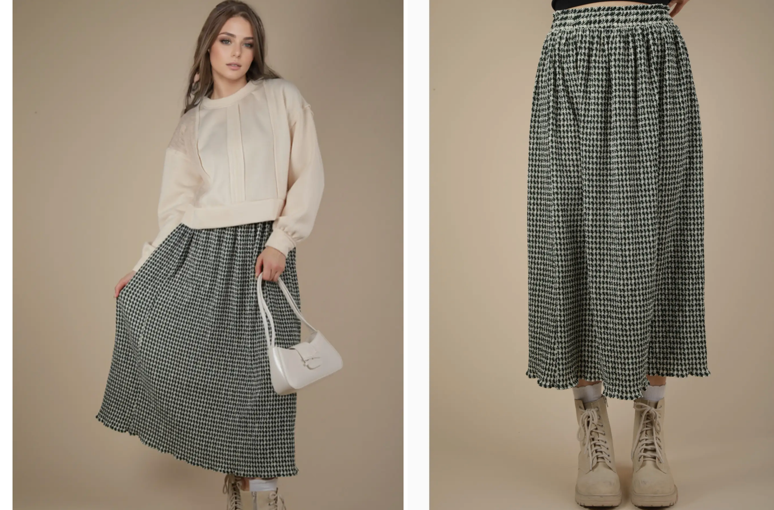 Embrace your inner plaid enthusiast with this charming Forrest Gingham Skirt! Featuring a classic check print that's anything but boring, this midi beauty boasts a comfortable elastic waist and delightful ruffle detailing for that extra twirl-worthy flair. Crafted from 100% polyester, it's easy to care for and ready for whatever adventure awaits. Perfect for pairing with your favorite sweater or tucked-in blouse, this skirt brings effortless style and playful personality to your everyday rotation.