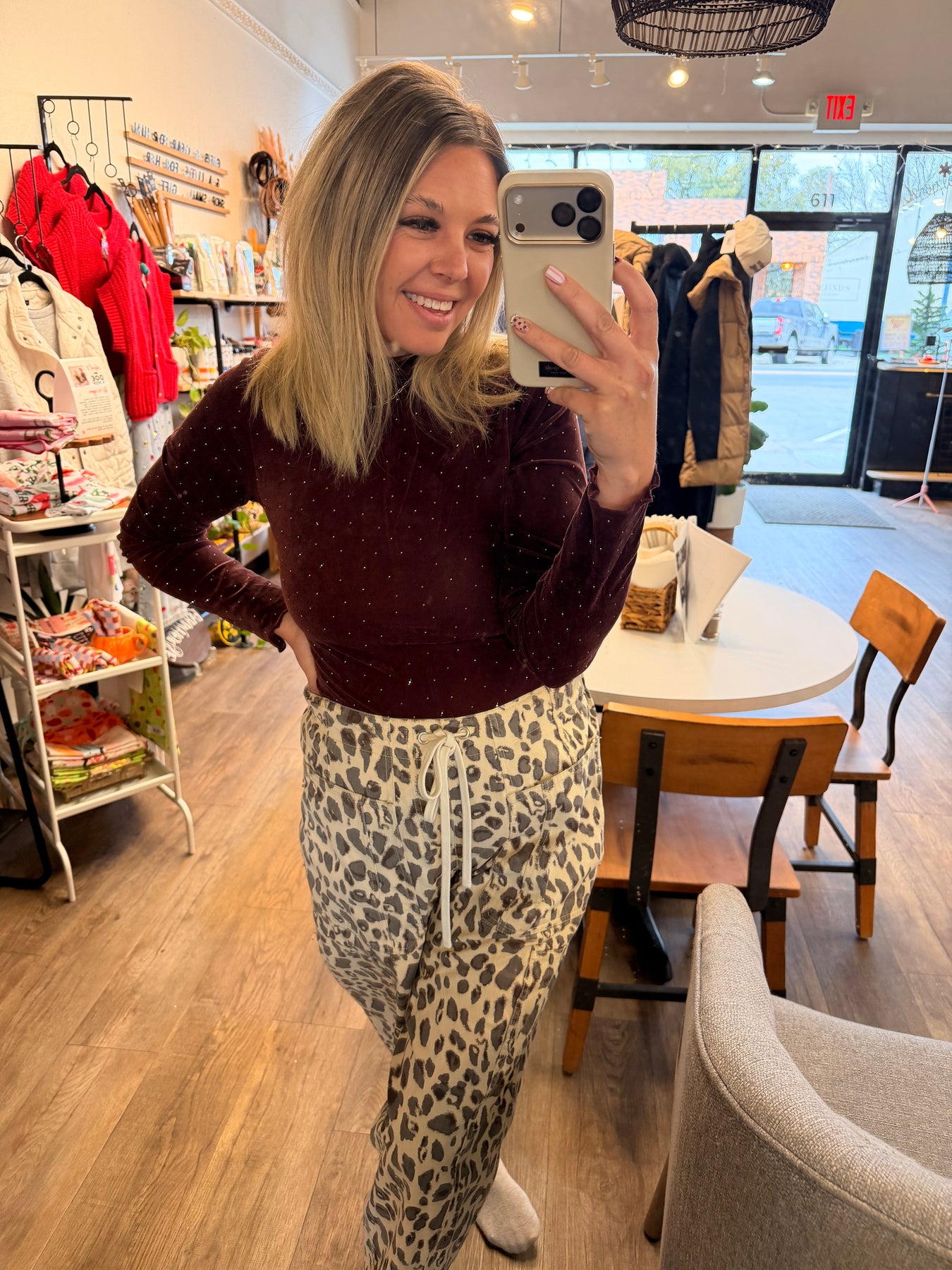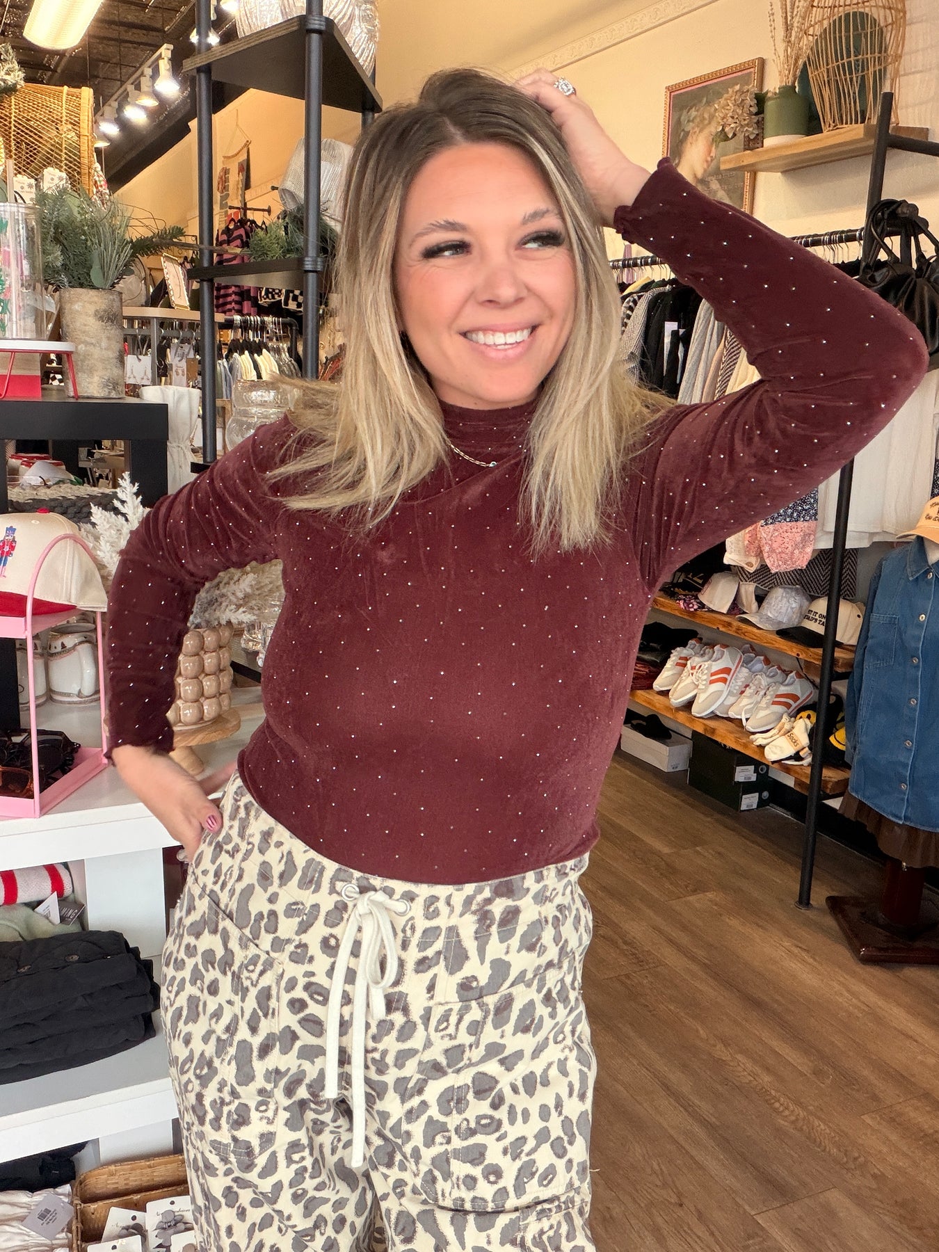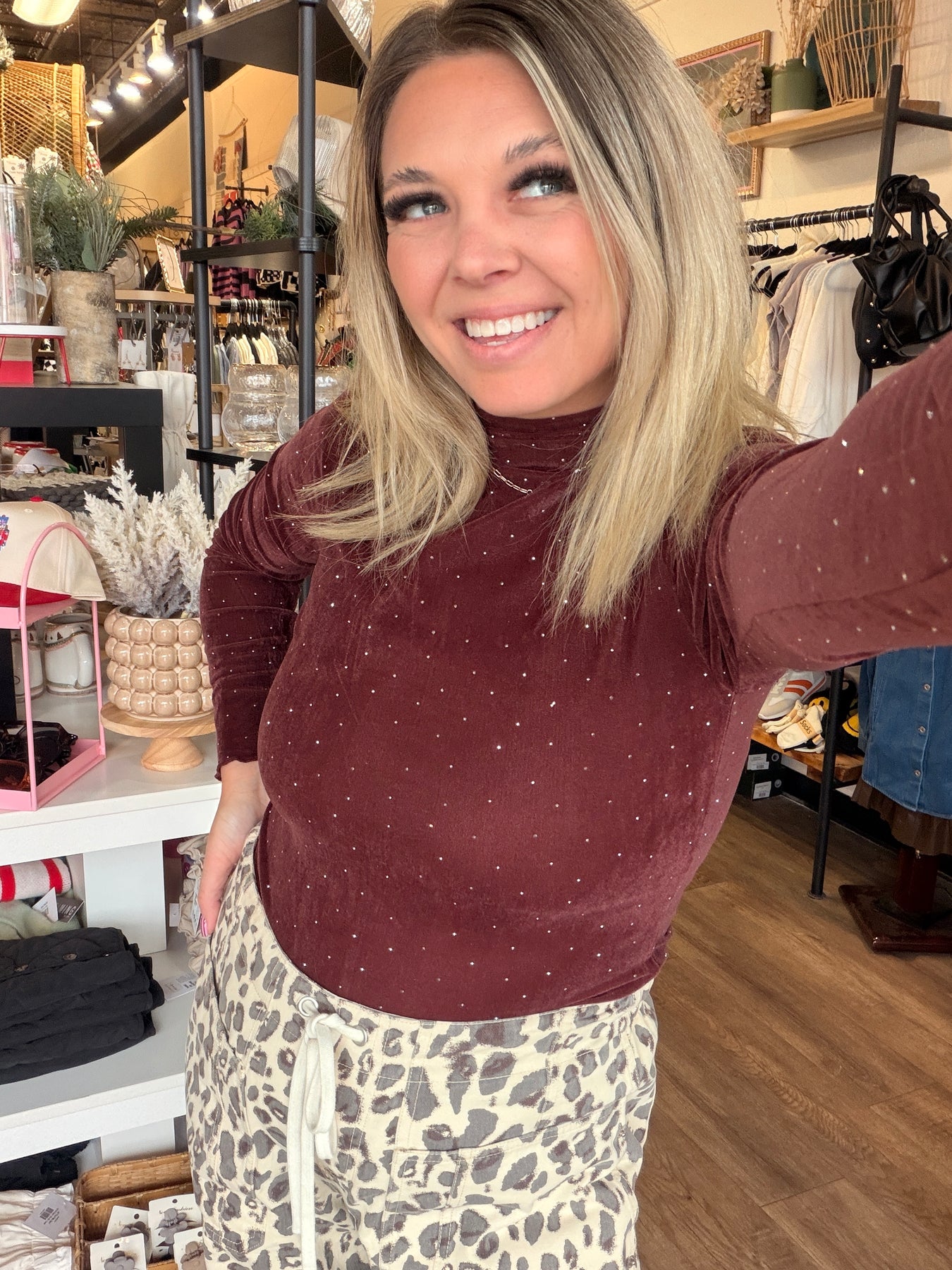 Slip into holiday magic with the Midnight Merlot Top—your new go-to for cozy gatherings and festive nights out. This long sleeve beauty pairs rich, wine-toned elegance with cloud-soft comfort that feels like a warm hug. Whether you're sipping cocoa by the fire or dancing at a holiday party, this top keeps you looking effortlessly chic while feeling absolutely snug. The perfect blend of seasonal sophistication and laid-back ease, it's the piece you'll reach for again and again when the weather turns cool.