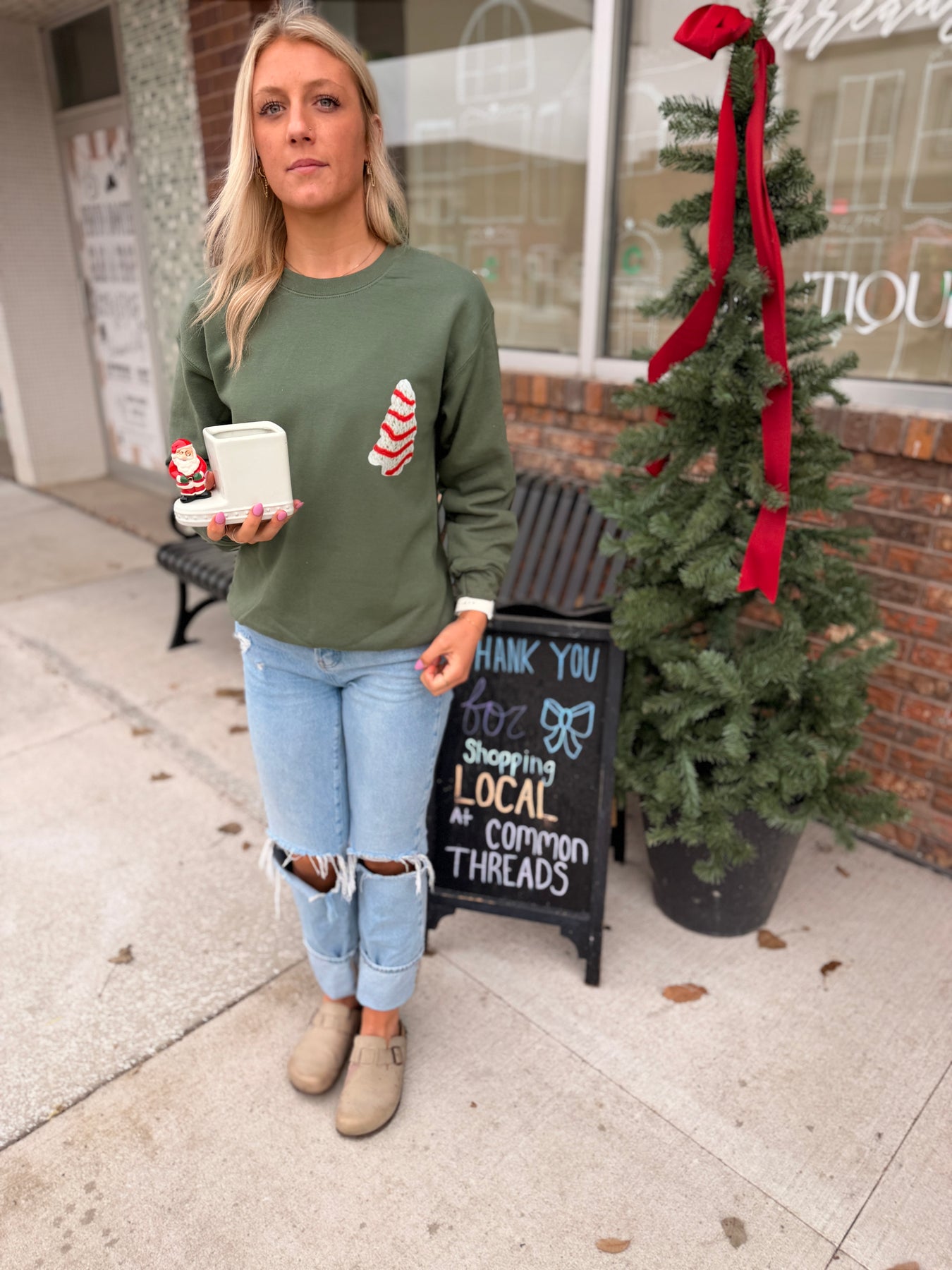Indulge in a playful treat with our Christmas Cake Graphic Crewneck! Featuring a charming yarn-inspired design, this sweatshirt is perfect for lovers of all things festive and sweet. Hurry and grab one while it lasts, or you'll be left with a case of FOMO (Fear of Missing Out)!