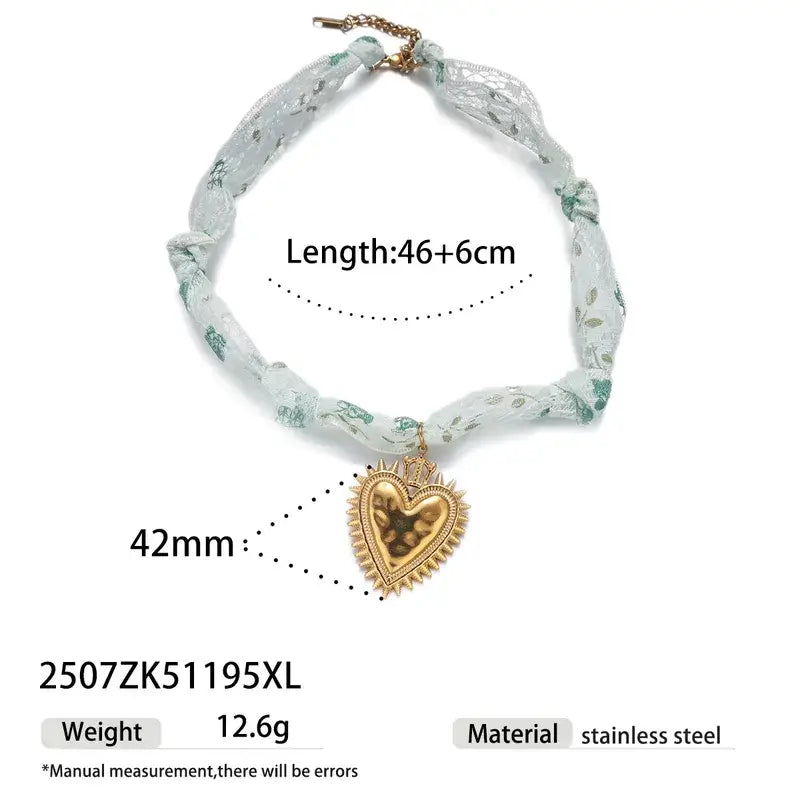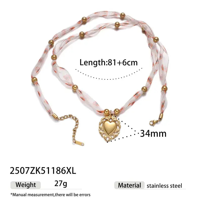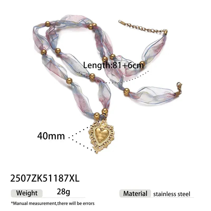 Bandana necklace in two different lengths. Accented with stainless steel charms and pendants. Sold per piece.