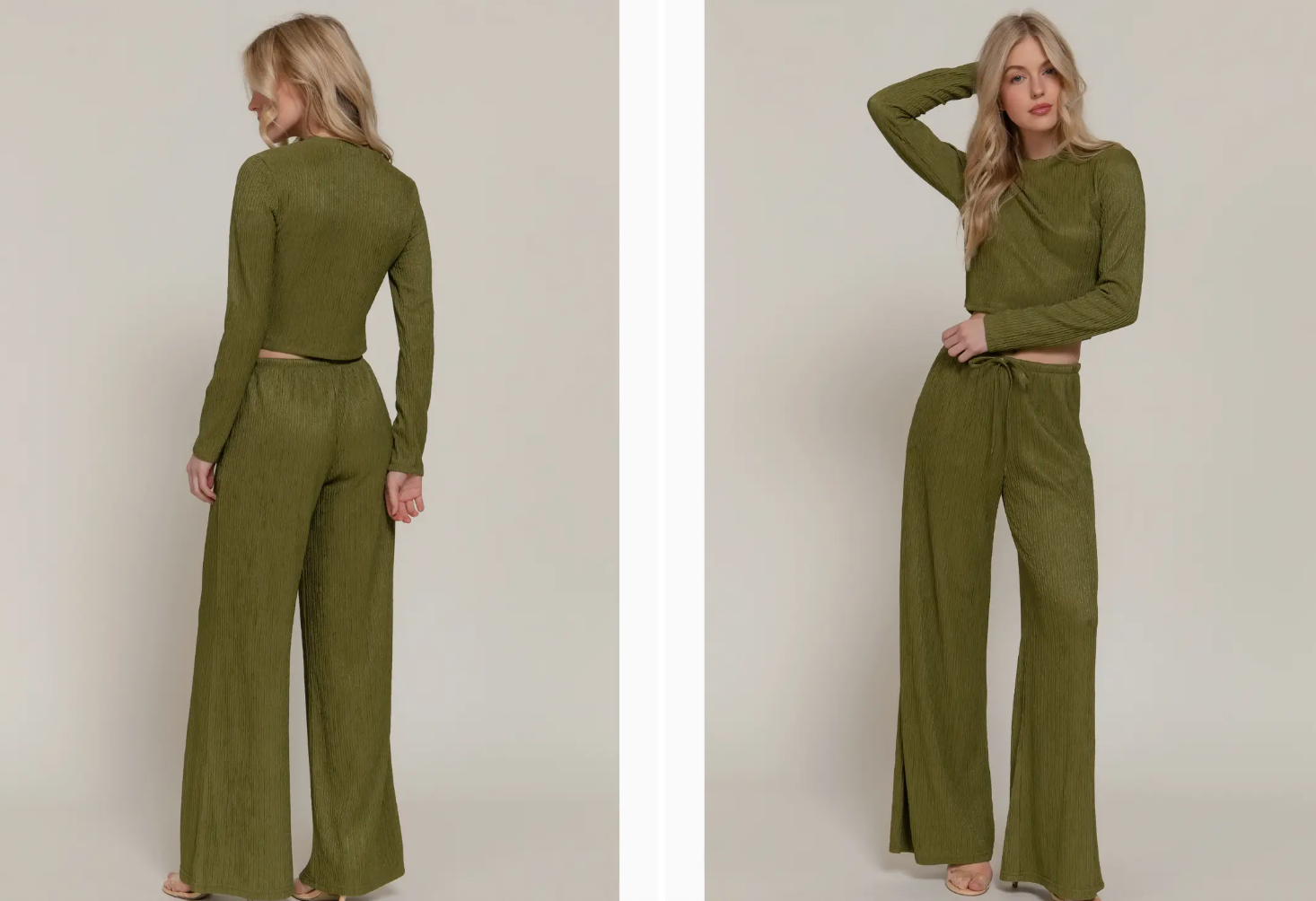 Embrace effortless comfort and style with the Mighty Mayhem Set. Featuring a long sleeve crew neck top with a playful waist tie detail and cozy pocketed long pants, this set is crafted from soft, wavy crinkle knit fabric. The blend of polyester and spandex ensures a perfect stretch and relaxed fit, making it ideal for lounging or casual adventures. Ready to bring a little fun to your everyday look? This set has you covered from head to toe.