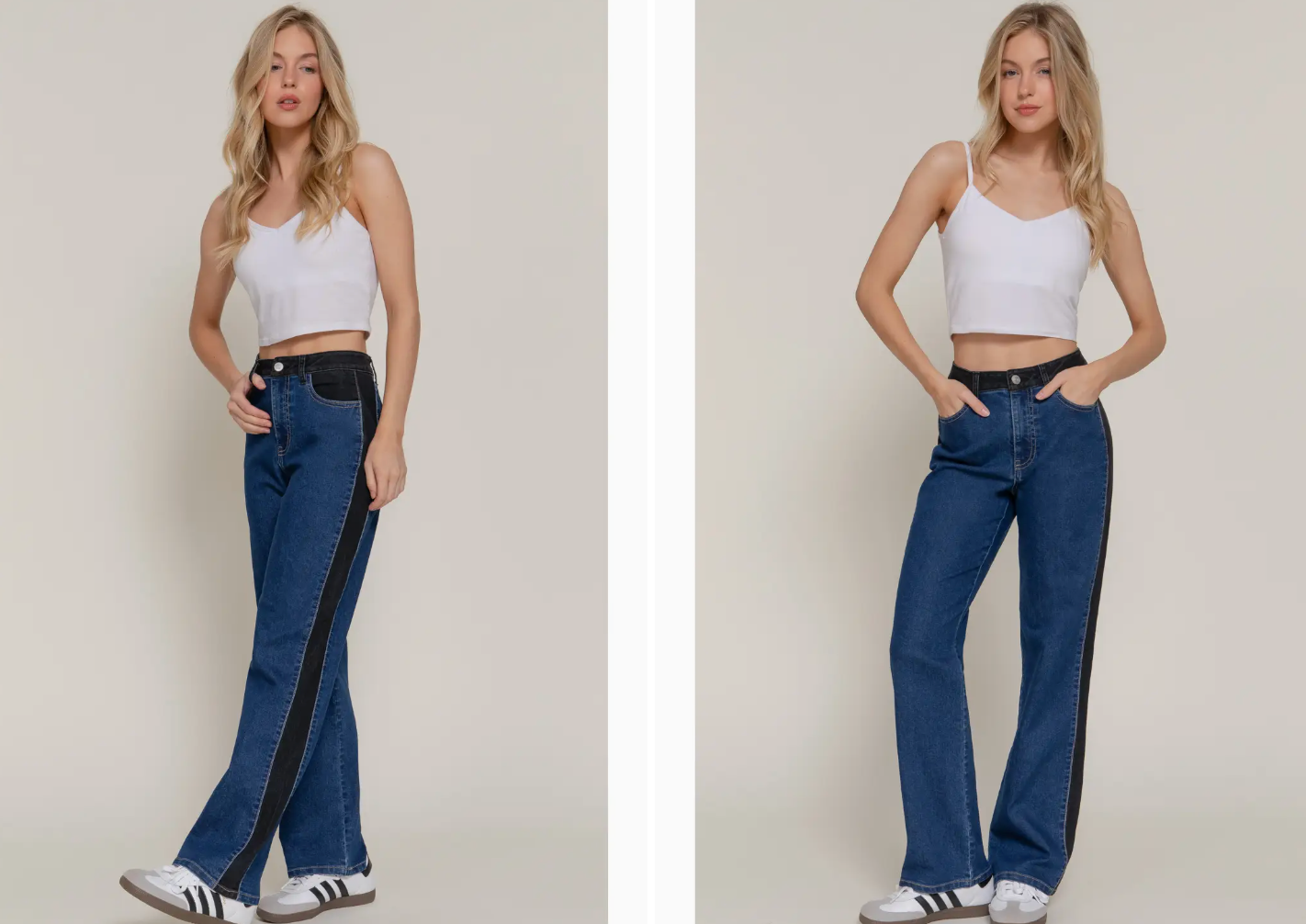 Step into style and comfort with the Sienna Jeans! These straight-fit denim pants feature a trendy side contrast stripe that adds a fun pop to your look. Crafted from stretch denim (75% cotton, 23% polyester, 2% spandex), they move with you all day long. Perfect for casual outings or a laid-back active vibe, the zipper front keeps things classic while the fresh design keeps you ahead in 2025’s denim game. Playful, comfy, and effortlessly cool—these jeans are ready to brighten your wardrobe!
