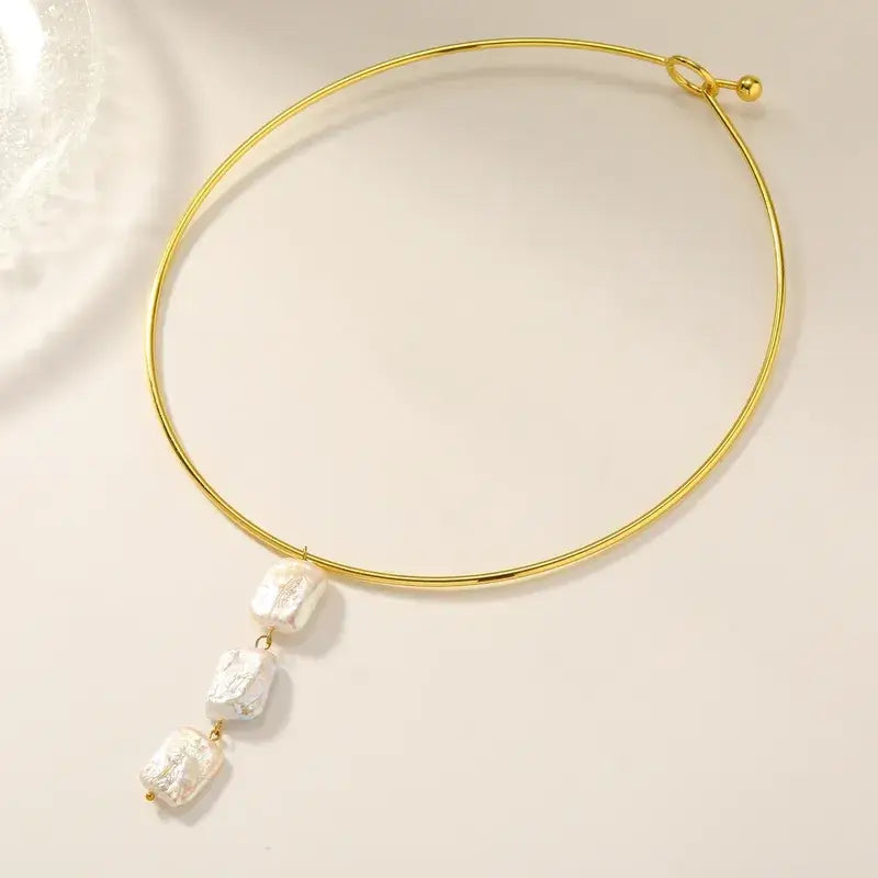 Bold statement collar necklace featuring a tubular chain design with genuine freshwater pearls. Crafted from durable stainless steel with PVD 18K gold coating for long-lasting shine. Finished with an easy S-clasp closure. Jewelry is not individually packaged, allowing shops to package according to their own branding and presentation preferences.