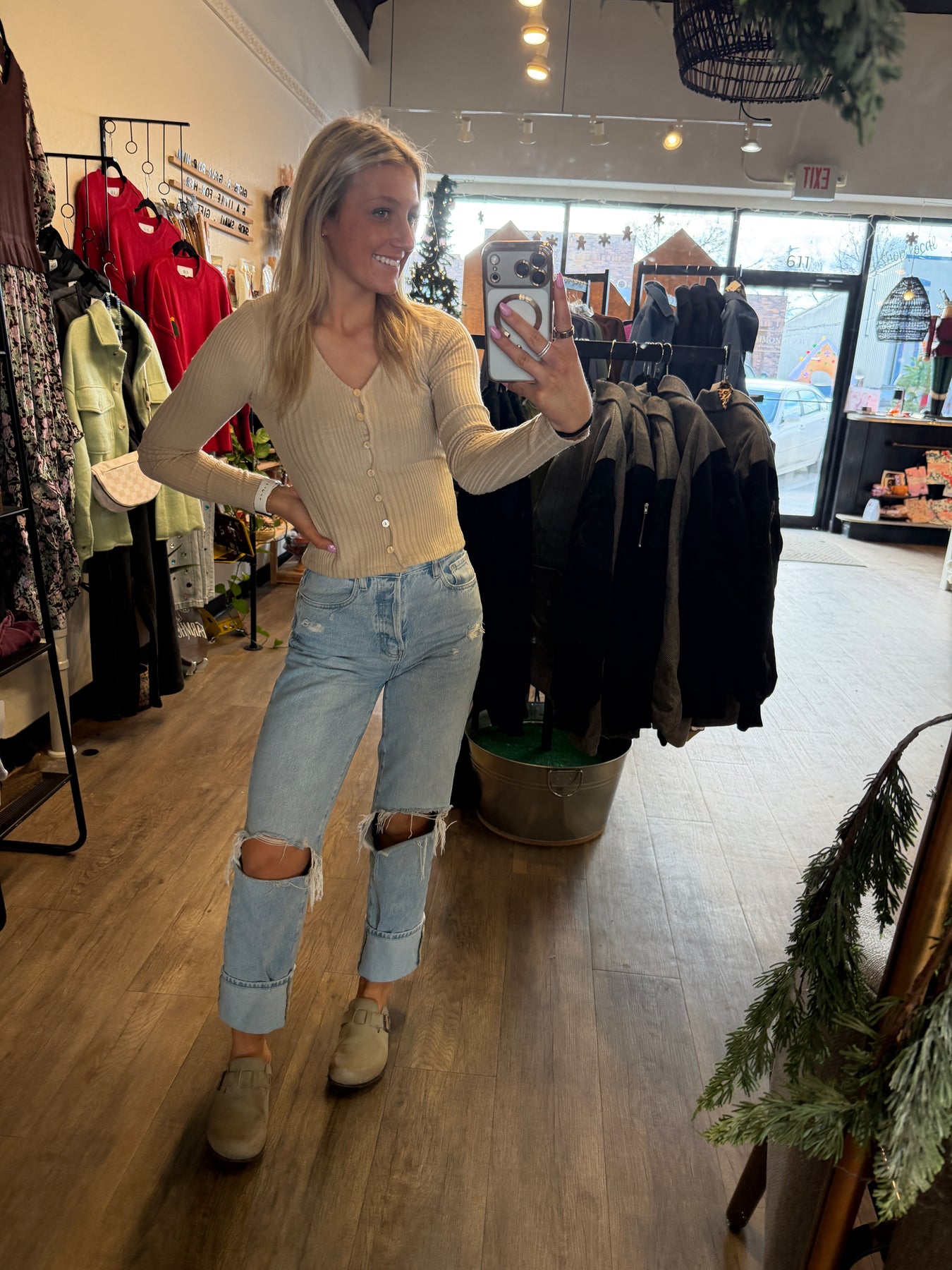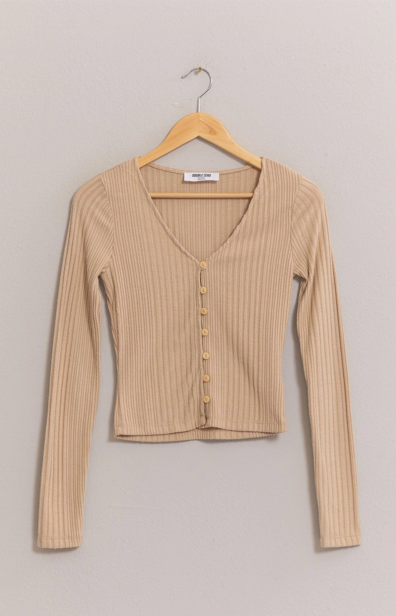 Wake up to luxury and wind down in style with the Beige Baddie Top. Crafted from a sumptuous brushed fabric blend that feels like a gentle hug against your skin, this piece features a flattering V-neckline and cozy long sleeves perfect for any season. The figure-hugging bodice is finished with a chic button placket down the front, giving you effortless sophistication from sunrise to sunset. Made from 47% rayon, 29% polyester, 22% nylon, and 2% spandex for the perfect balance of softness and stretch.