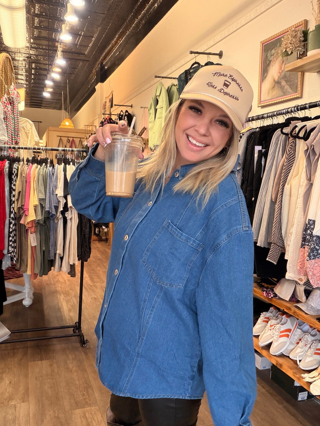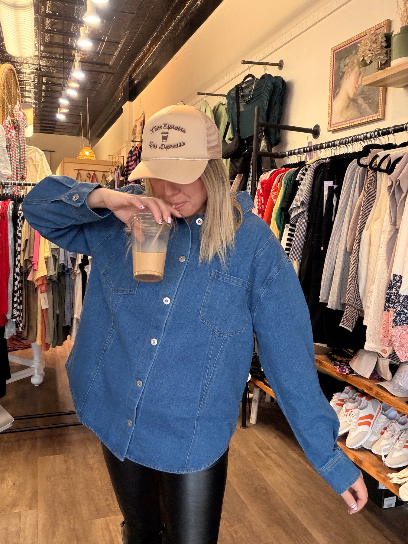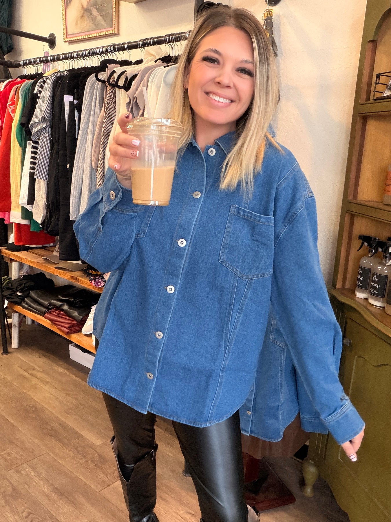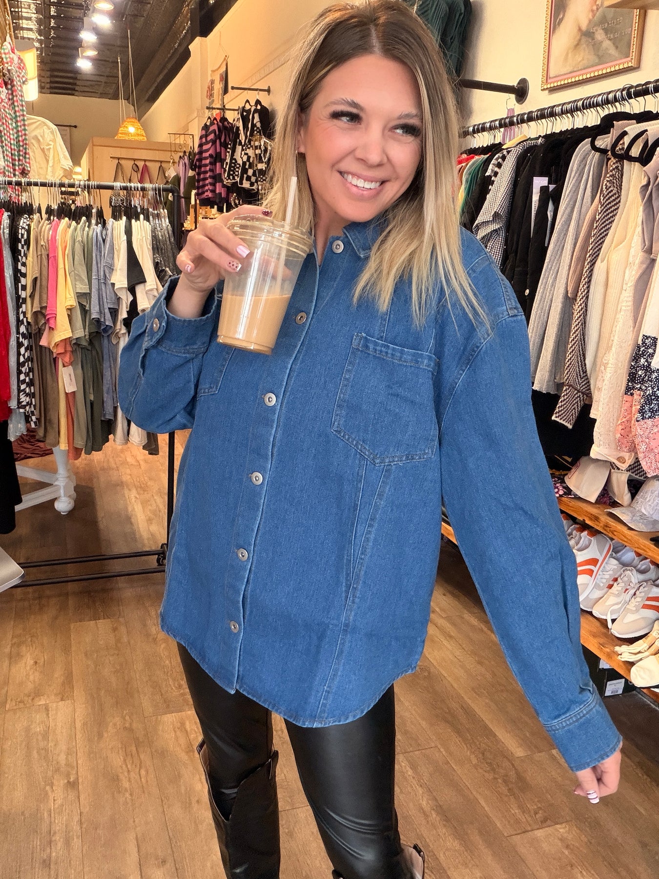 Throw on the Delaney for that effortlessly cool vibe that says "I woke up like this." This oversized denim shirt features a relaxed drop shoulder cut and long sleeves perfect for layering or going solo. Button-down front with functional patch pockets keeps things casual and convenient. Washed to perfection for that lived-in look that only gets better with time.