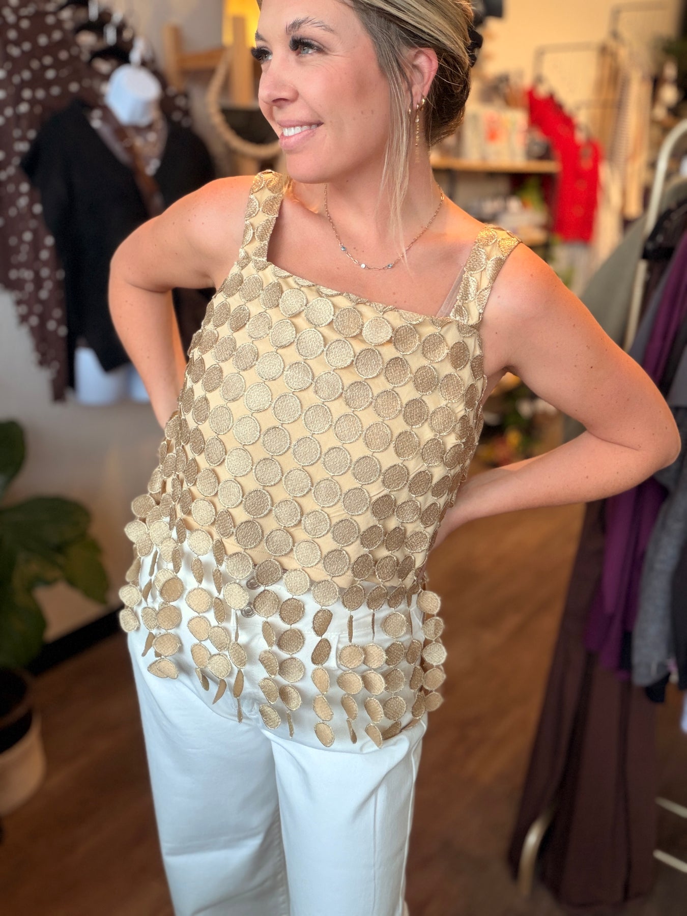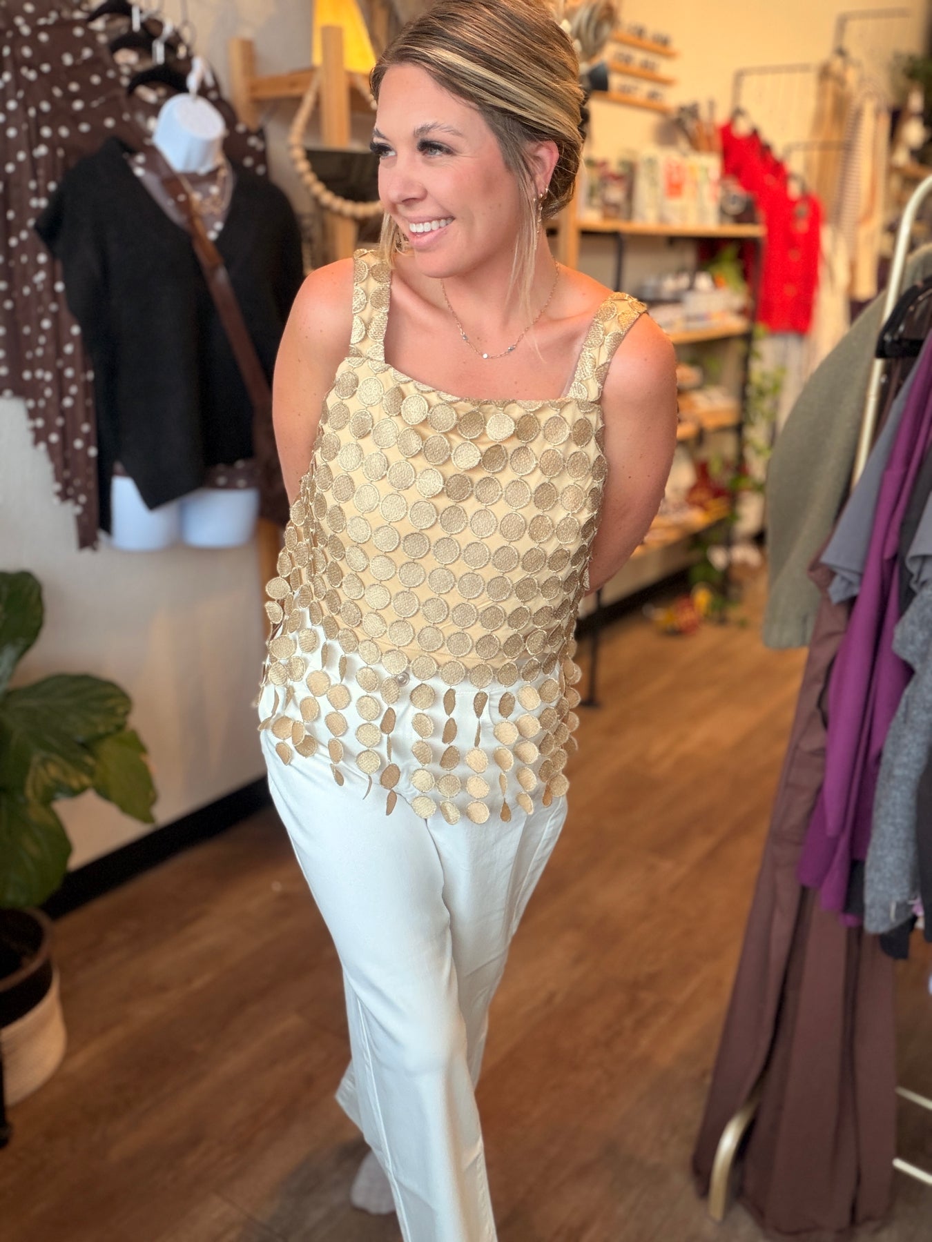 Shine bright this holiday season in our Golden Hour Tank—a radiant gold piece that's equal parts chic and charming. The perfect companion to festive reds, this adorable tank layers beautifully over long sleeves or stands solo on milder days. Whether you're decking the halls or catching up with loved ones, this golden beauty adds warmth and sparkle to your seasonal wardrobe. Simple, stunning, and ready to celebrate.