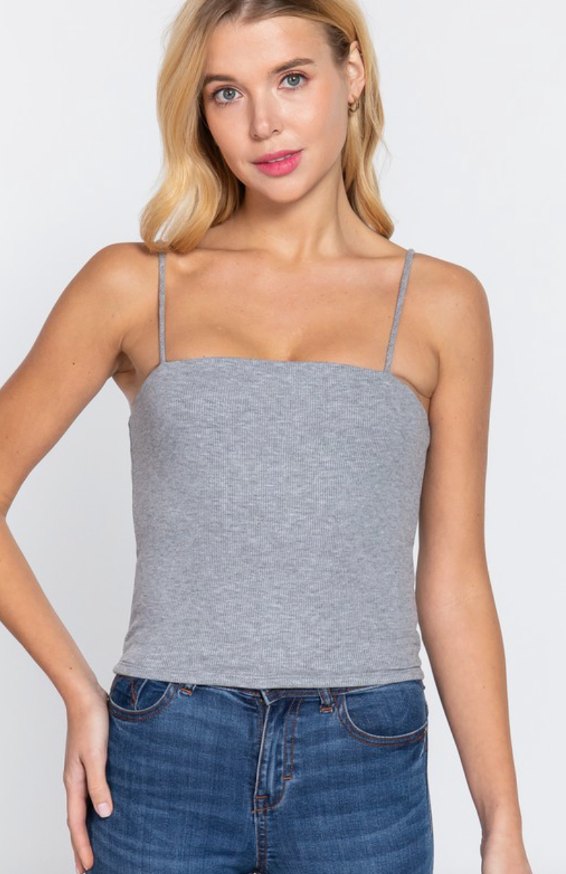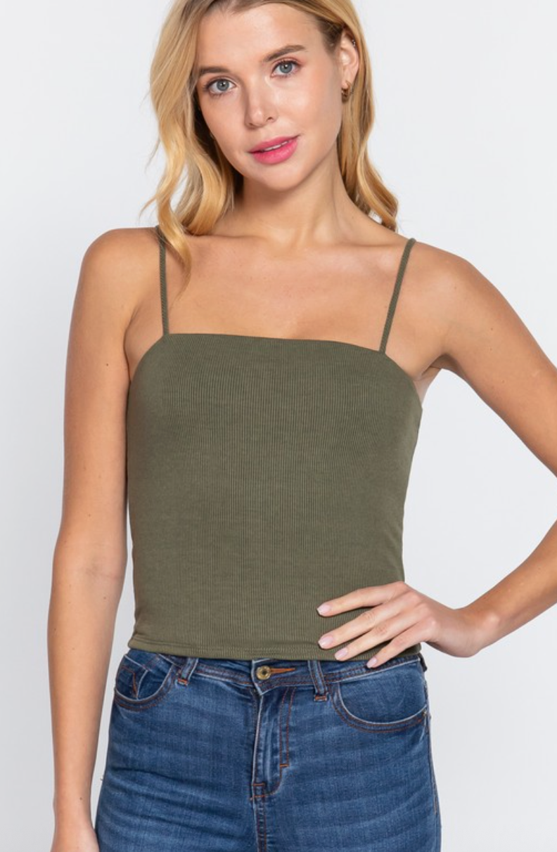Effortless layering meets everyday comfort with this essential cami top. Crafted from a soft 2x2 rib knit fabric, this versatile piece features a classic straight neckline and sleek silhouette perfect for spring and summer styling. Whether worn solo or layered under your favorite pieces, this wardrobe staple transitions seamlessly from casual days to relaxed evenings. A must-have basic that works with everything.