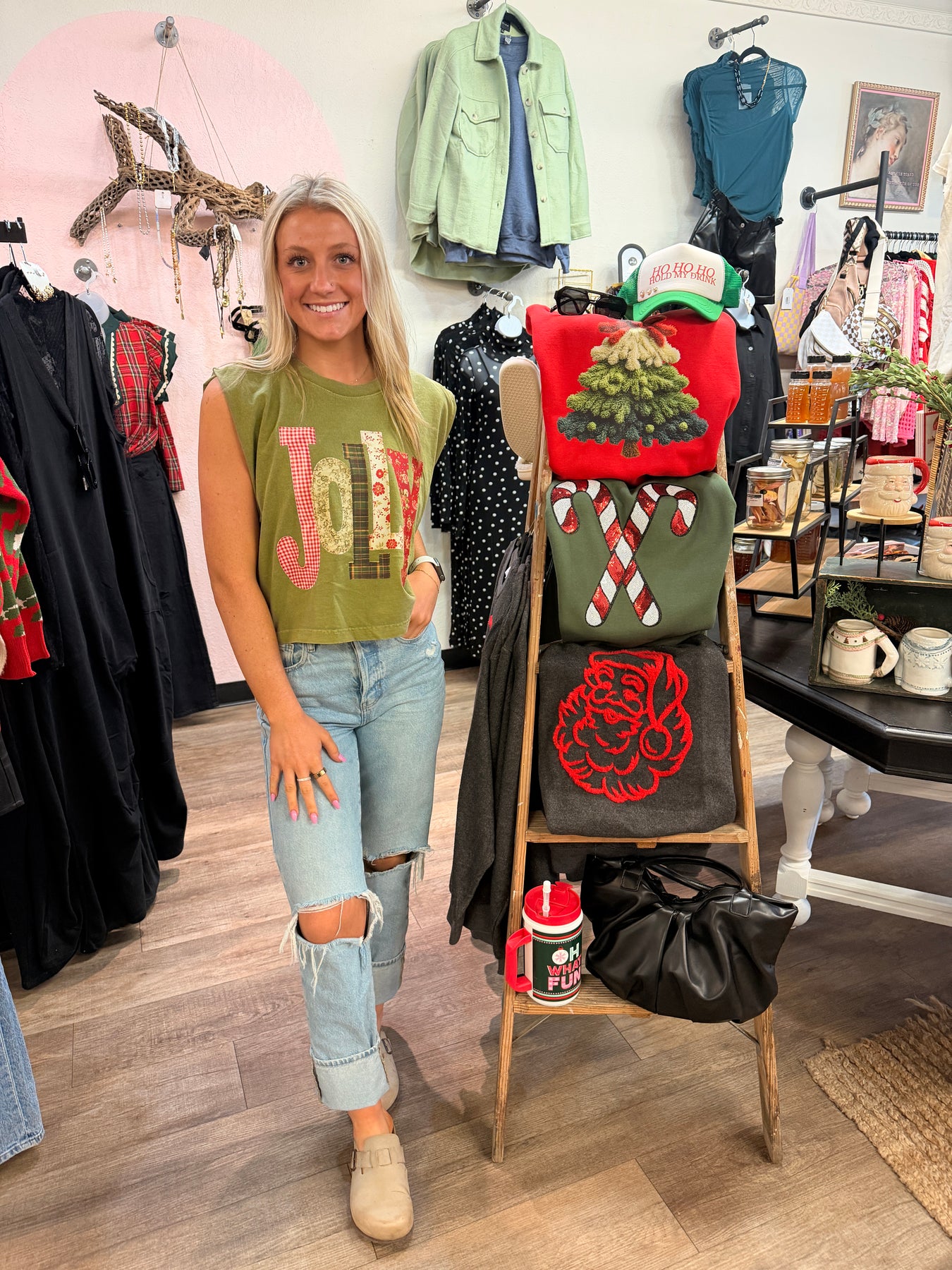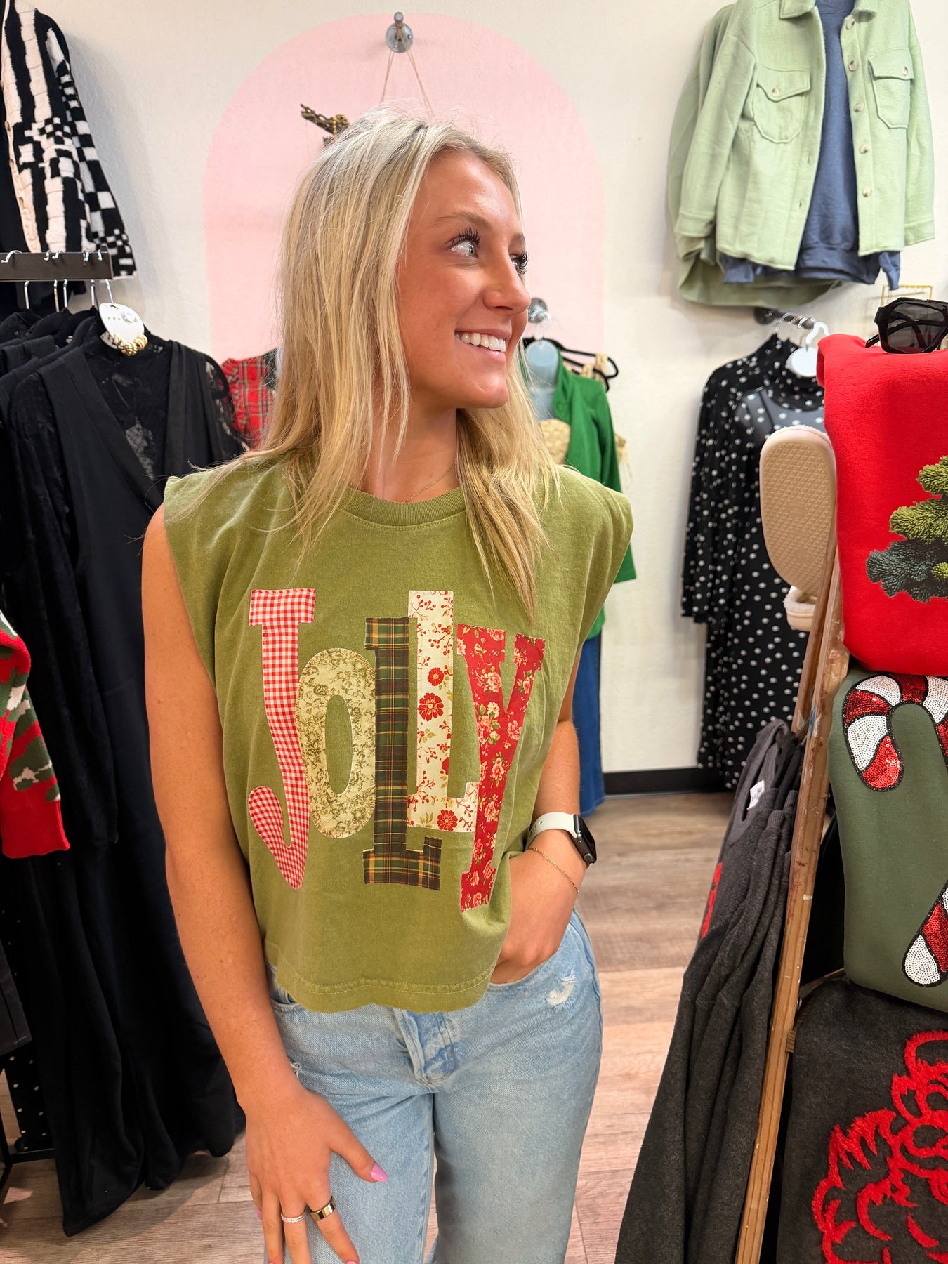 Introducing our Jolly Cropped Tee! This tee features adorable "Jolly" faux quilted letters and runs true to size. Stay stylish and comfortable with this playful and trendy piece.