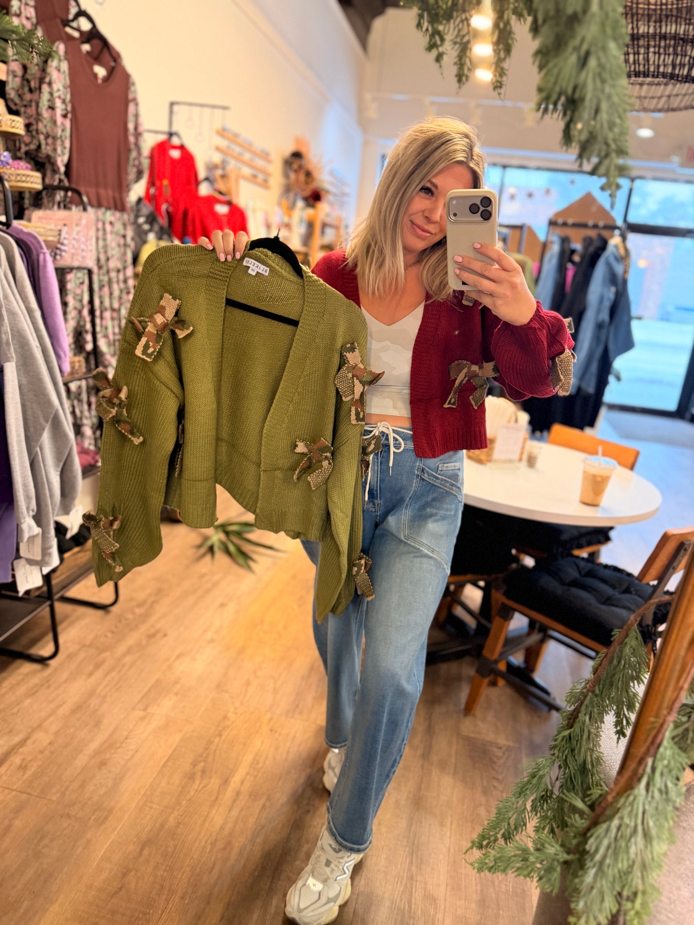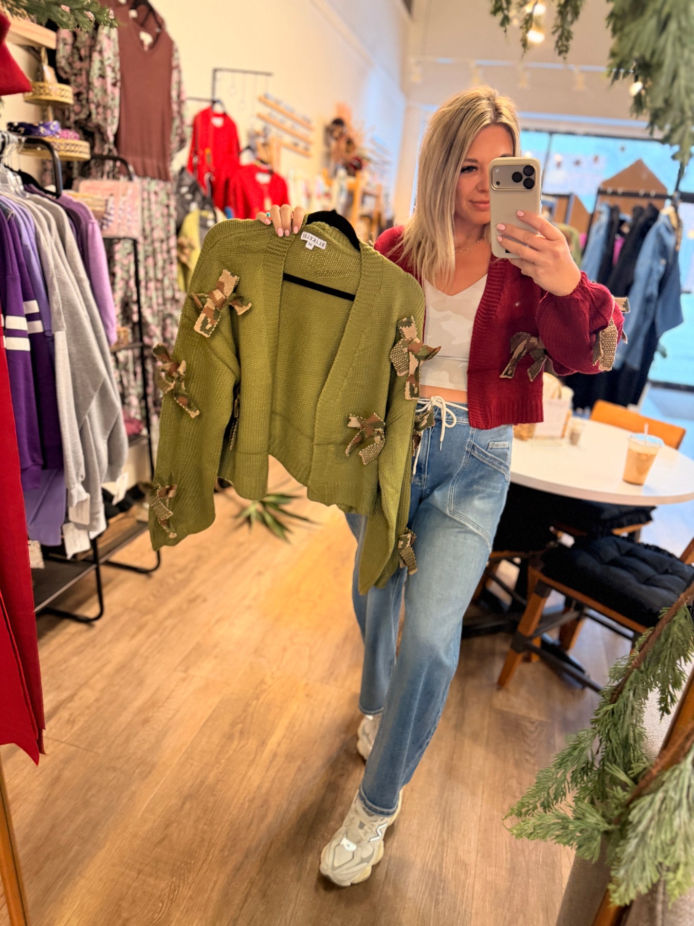 The Sloan Cardigan is your new seasonal obsession! This cropped knit beauty features an open front design that's perfect for layering, complete with eye-catching knit camo and cheetah bow details. The slightly bubble sleeves add just the right amount of playful flair to keep things fresh and fun. Whether you're dressing up your favorite tee or throwing it over a dress, this trendy piece is ready to become your go-to favorite. Get ready to turn heads! One size fits most!